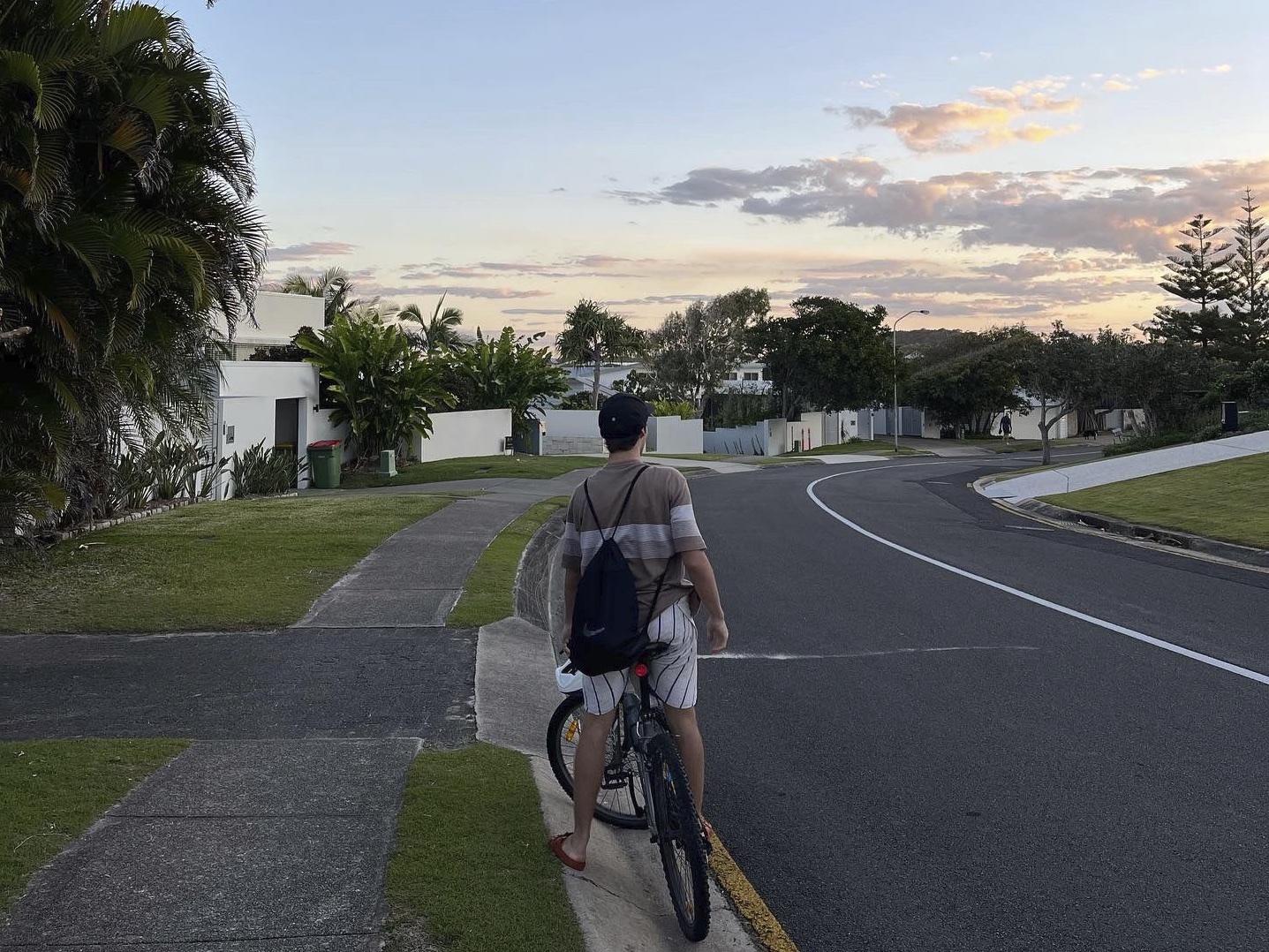 Im Moment ist mein Leben viel ausgeglichener und organisierter. Ich habe meinen Tagesablauf, der eigentlich sehr einfach ist: Ich laufe zur Schule, danach gehe ich zum Mittagessen nach Hause und anschließend treffe ich mich mit meinen Freunden am Strand oder surfe oder spiele Ball. Wenn ich gegen 18:30 Uhr nach Hause komme, mache ich ein paar Fitness-Übungen und meine Hausaufgaben. Vor dem Schlafengehen schaue ich meist noch eine Serie mit meiner Gastfamilie.